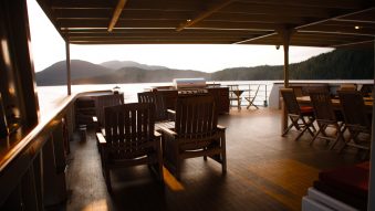Die MV Cascadia gleitet durch das laut Bella Coola weltweit größte zusammenhängende Netzwerk an Fjorden und Inlands-Wasserwegen. Jeder Abend und damit jeder neue Ankerplatz eröffnet neue magische Einblicke in die atemberaubende Naturkulisse. Der vielleicht beste Aussichtspunkt befindet sich auf dem obersten Deck. Dort gibt es einen Hot Tub, von dem aus Urlauber eine perfekte Rundum-Sicht auf die vorbeiziehende Szenerie genießen.